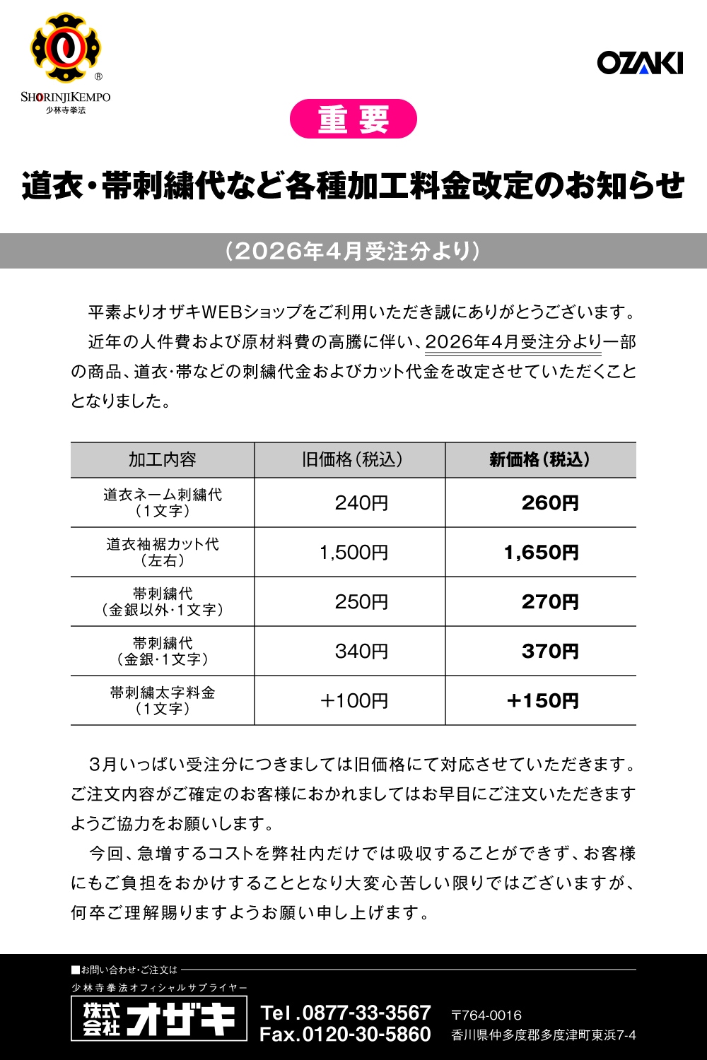 【お知らせ】ホワイトラベル道衣の仕様変更につきまして